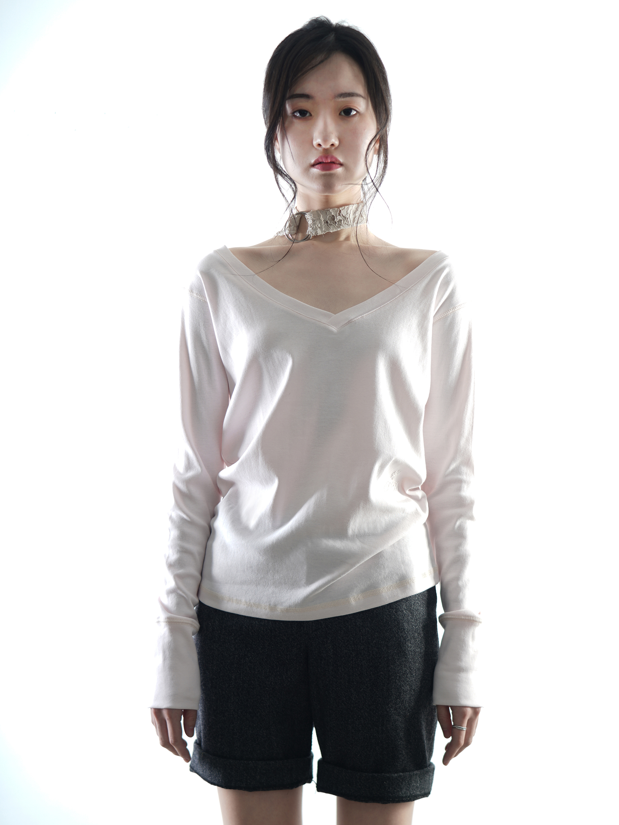 Loose v-neck long sleeve -Bright pink